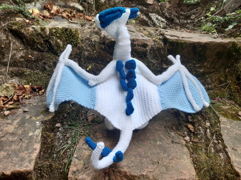 • Grande wyverne – Version Lugia (Pattern : Crafty Intentions) : Je l’avais commencée en Février, et j’avoue que je l’ai pas mal procrastinée, il faut dire que ce n’est pas le modèle le plus facile à gérer niveau armature^^ Mais je suis vraiment contente du résultat, quand j’ai commencé le crochet il y a 3 ans, je n’aurais jamais cru que je serai capable d’obtenir une telle réalisation. Pour des raisons évidentes, elle n’est pas à vendre, il aurait fallu que je la propose à au moins 200-300 euros pour que ça vaille le coup, donc bon^^
