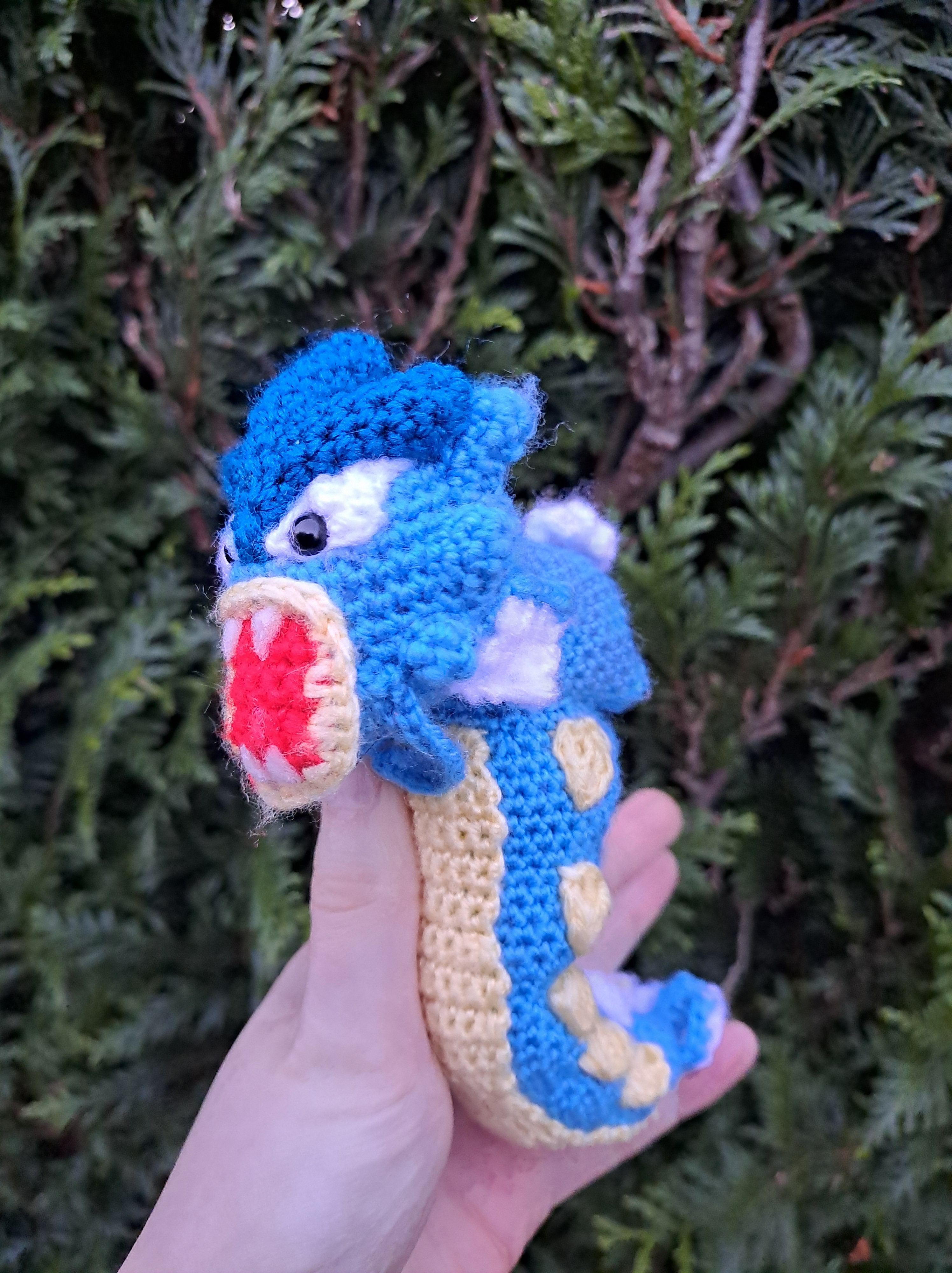 - Léviator (Pokémon) d’après un pattern de Sir PurlGrey : Ca faisait un moment que je l’avais commencé, mais comme c’était pour un cadeau de Noël, il a bien fallu que je me bouge pour le finir. Il n’était pas compliqué, mais il nécessitait beaucoup de couture. Et j’aime pas la couture T_T