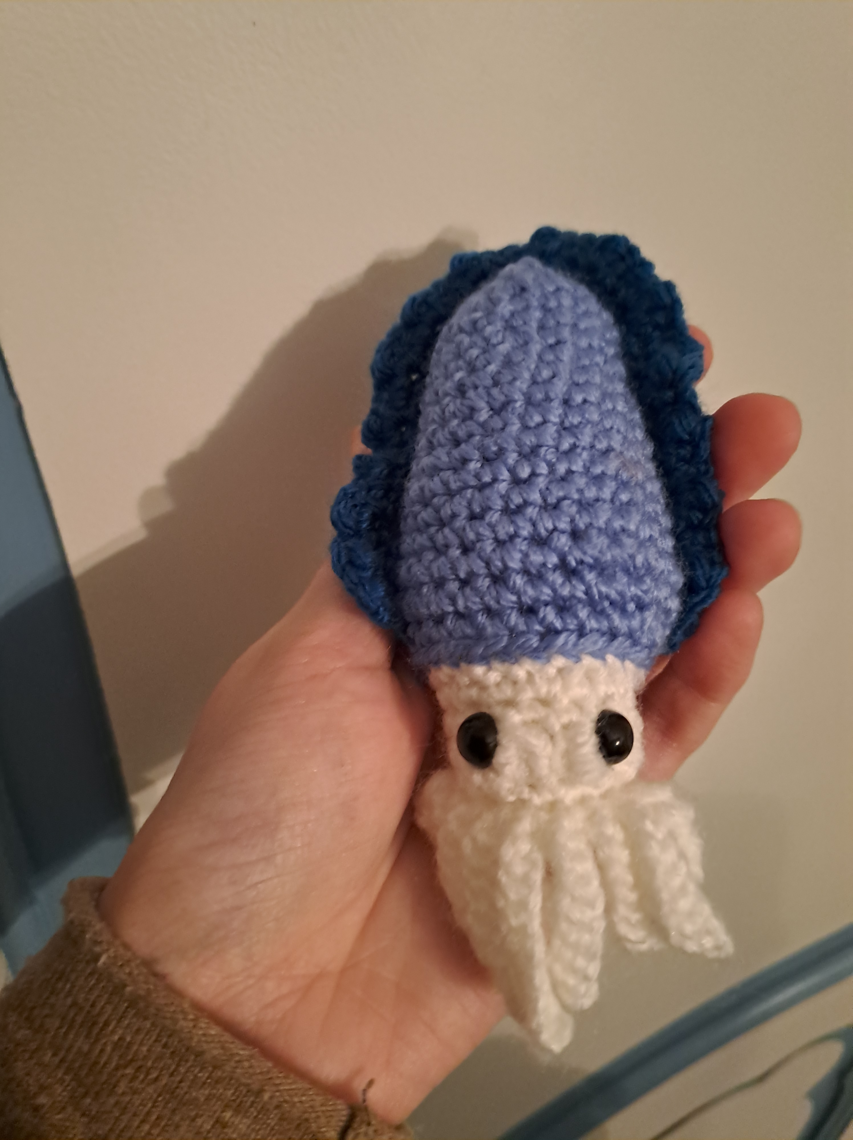 - Seiche qui adore plonger, d’après un pattern de Steven Wyckoff : Petit clin d’oeil à mon neveu qui m’a fait découvrir Lord of the Mysteries. Si vous ne comprenez pas, regardez le nom de l’auteur et traduisez-le en français^^