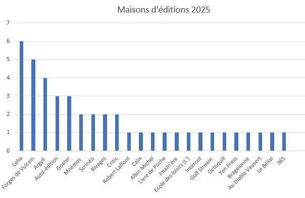 36 livres sont entrés dans ma PAL en 2025, et 38 en sont sortis, cette année j’ai enfin réussi à trouver un certain équilibre, j’en avais fait entrer beaucoup trop en 2024. En 2026, on va essayer de continuer à diminuer tout ça.